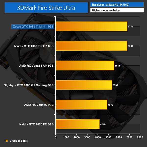 Early indicators are good for the Zotac Mini as it pulls ahead in all three 3DMark synthetic tests. This would be due to the small +38MHz factory overclock which means the Mini edges out Nvidia's reference design.