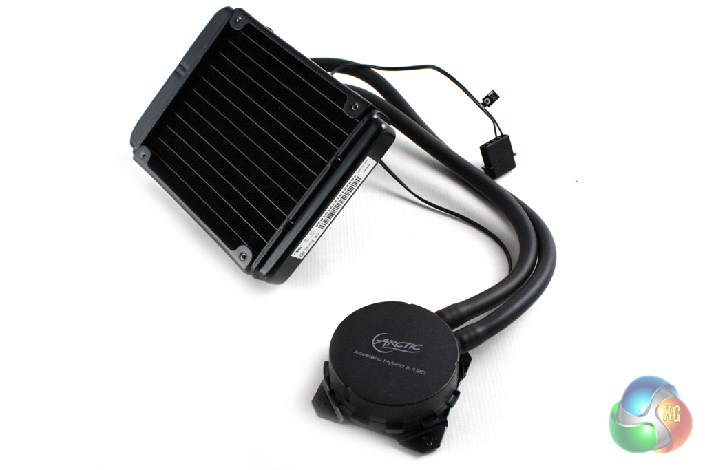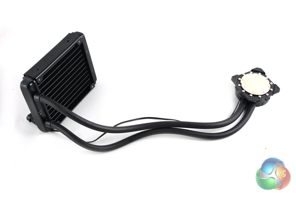 The liquid cooling unit appears to be an Asetek design, featuring a slightly adapted version of their standard water block alongside a 120 mm radiator. The coolant tubes are made from rubber and are a little longer than those found on most liquid CPU coolers. This gives you more flexibility to position the radiator in different locations around the case.