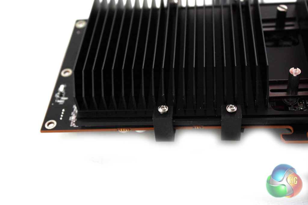 Once the card is installed into your system, a GPU support bracket must be attached which spans five expansion bays. We have also photographed this to give you a better idea of what it looks like.