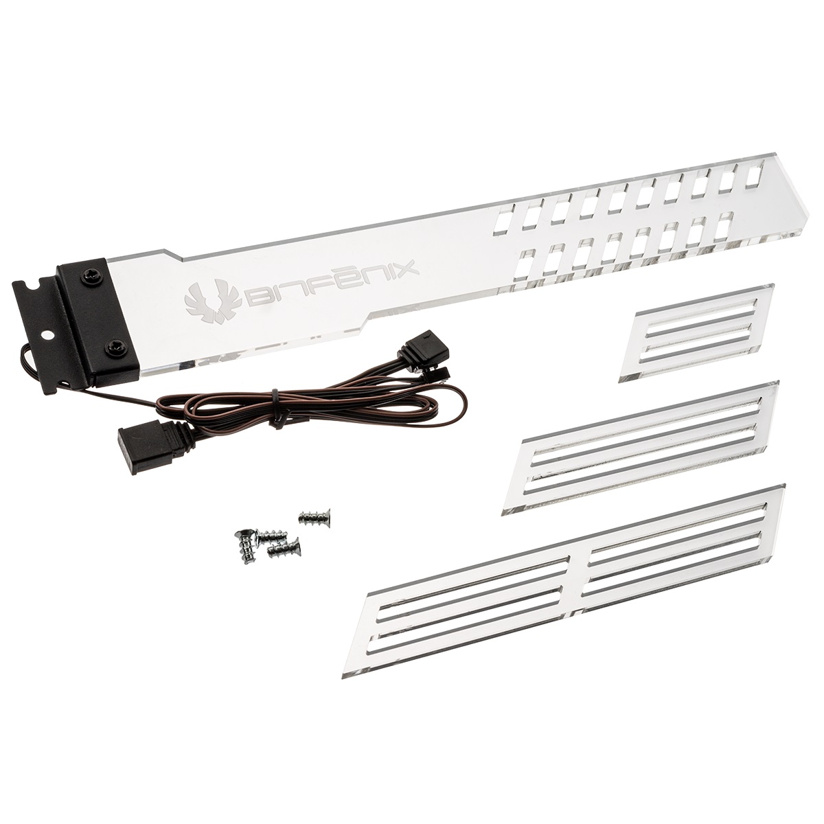 BitFenix has designed the GPU bracket to be installed in PCIe slots below the GPU, with adjustable supporting arms to prevent the graphics card from sagging and putting extra strain on the PCIe slot. The Alchemy 3.0 ARGB GPU Bracket can be customised to the users liking, with 18 mounting holes to ensure excellent compatibility and three extension sizes of 45m mm, 80 mm and 120 mm.
