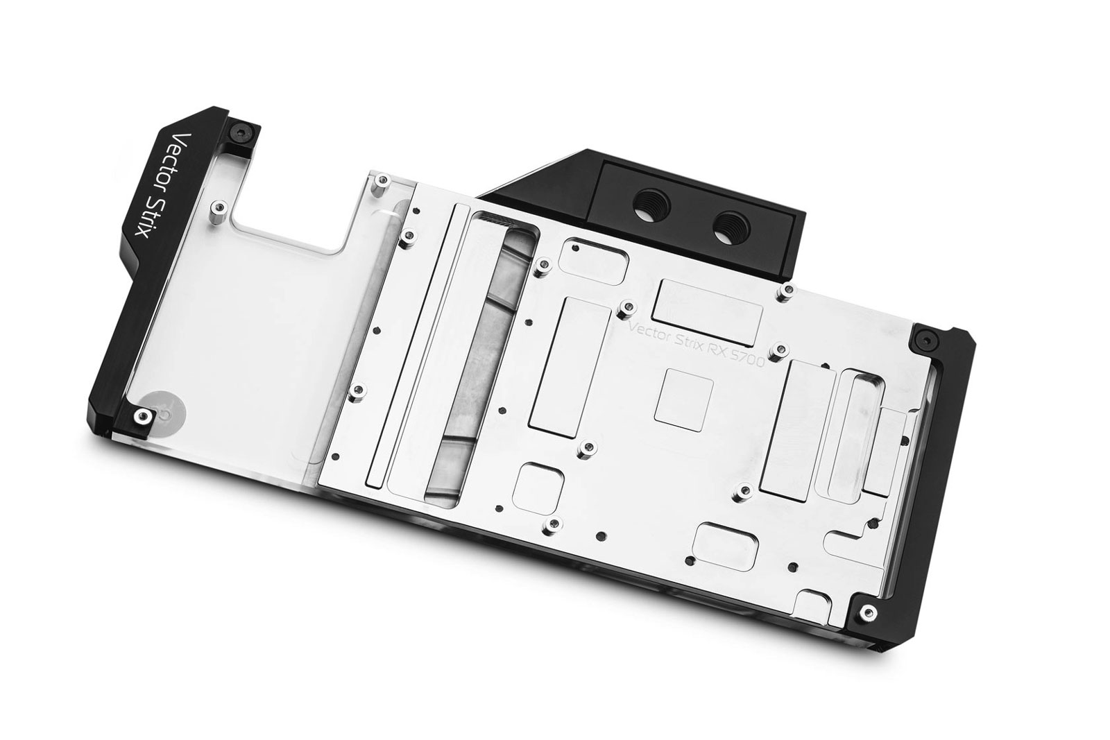 In addition to the new EK-Quantum Vector Strix RX 5700 +XT water block, EK has launched new backplates for the ROG Strix RX 5700 and 5700 XT cards. The backplates are CNC machined from black anodised or nickel-plated aluminium and unlike factory backplates, the EK ones cover the entire length of the PCB, to provide passive cooling for the voltage regulation modules on the rear.