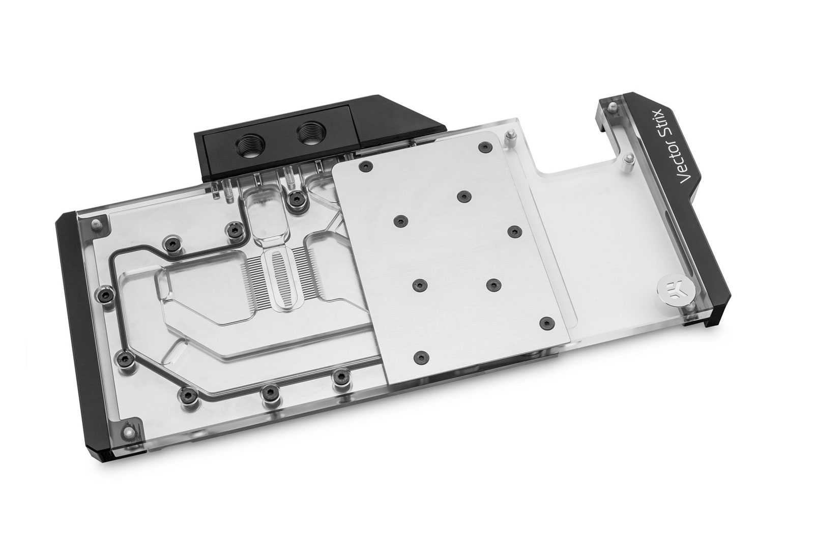 EK’s new range of Vector GPU blocks feature a redesigned cooling engine with a larger footprint to the previous version. The base of the new water block is manufactured from high-grade nickel-plated electrolytic copper, while the top portion is available in either a high-quality acrylic or black POM Acetal finish with EPDM rubber O-rings ensuring the block is sealed from leaks.