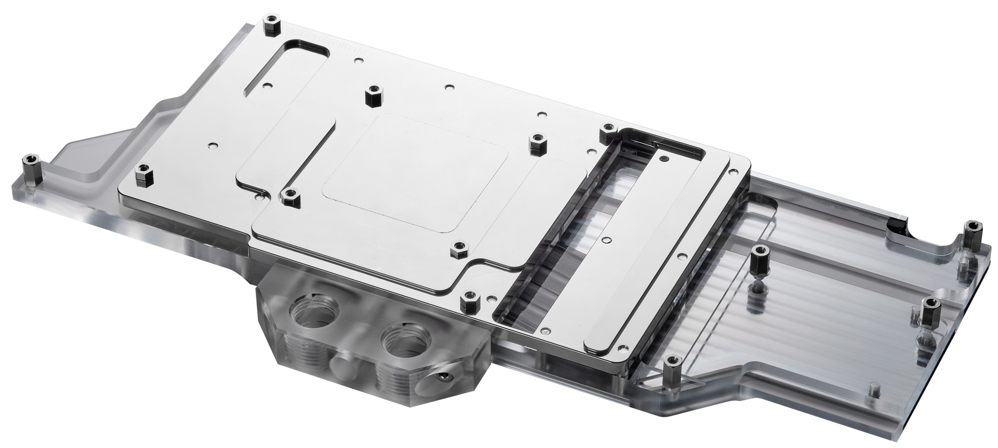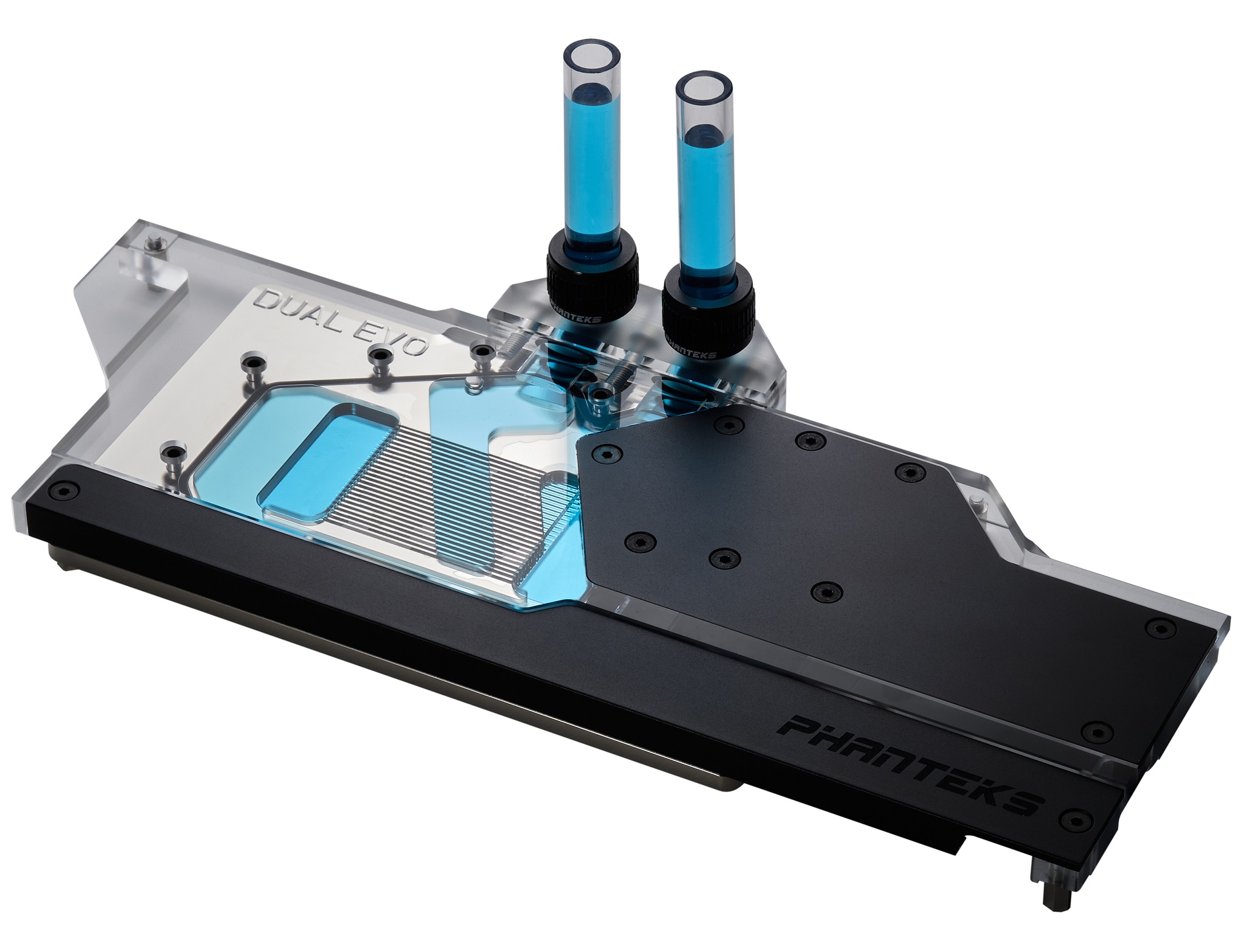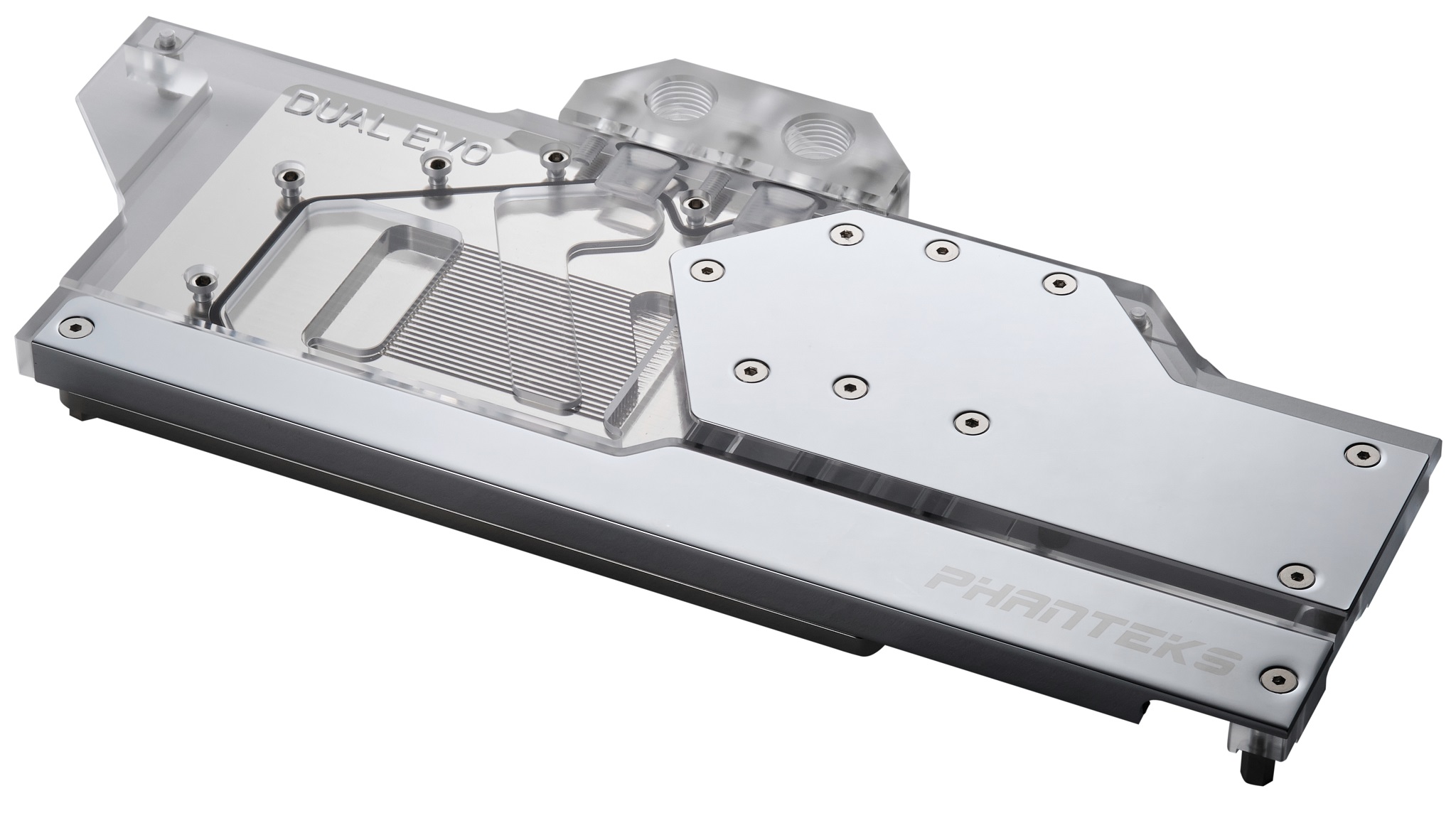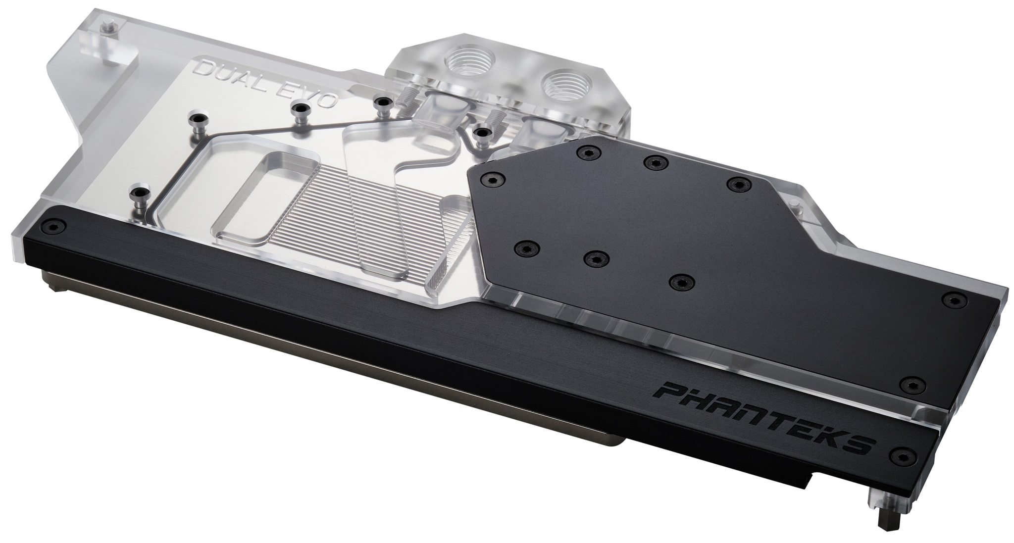 Phanteks Glacier Dual EVO GPU blocks are optimised to cool the entire graphics card by covering all the critical components as well as the GPU core. The thermal transfer block is manufactured from nickel-plated copper and features an optimised channel structure to ensure the coolant is fed to critical areas such as the GPU core, VRAM and the VRM for efficient and effective cooling.