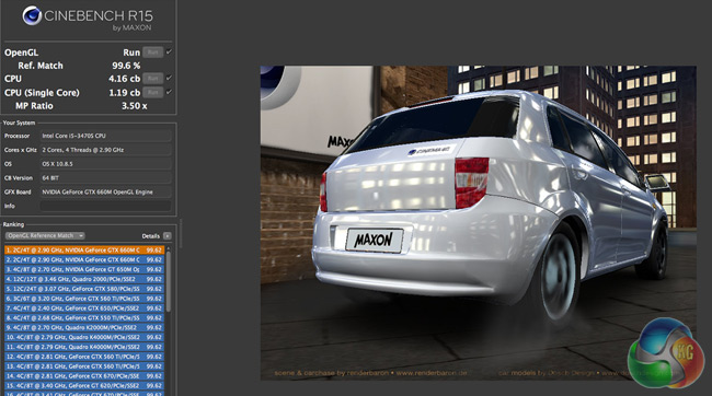 This is a great initial performance test for a workstation, or indeed any PC (or Mac!). The two halves of the test simulate modelling and rendering performance. The modelling test uses OpenGL and is mostly relying on graphics performance; the rendering test is highly multi-threaded so takes full advantage of a multi-core CPU.