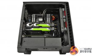 If you open up one side of the WS-X1100 to reveal the main components, you could be forgiven for thinking that there are no drive bays inside at all. But lurking at the bottom are a couple of 3.5in bays. These sit in front of the potent 1,200W 80-Plus Gold Certified power supply.