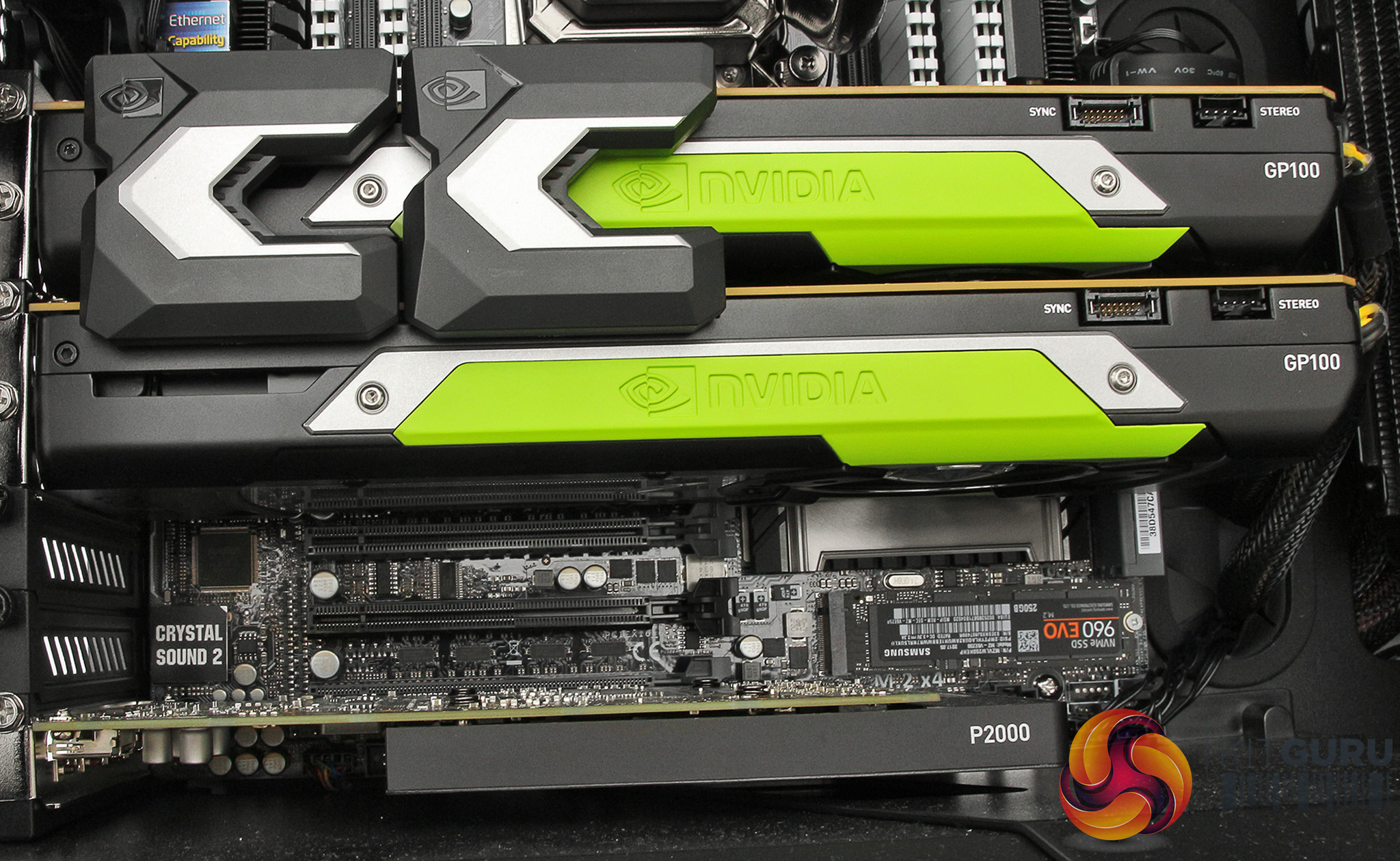 So the GP100 is specifically aimed at applications requiring maximum memory bandwidth, and you can further accentuate this by connecting two together using NVIDIA's NVLink (which was included in our Workstation Specialists test system). This pools the memory for use by both graphics cards, allowing them to share a 32GB pool of extremely fast memory.