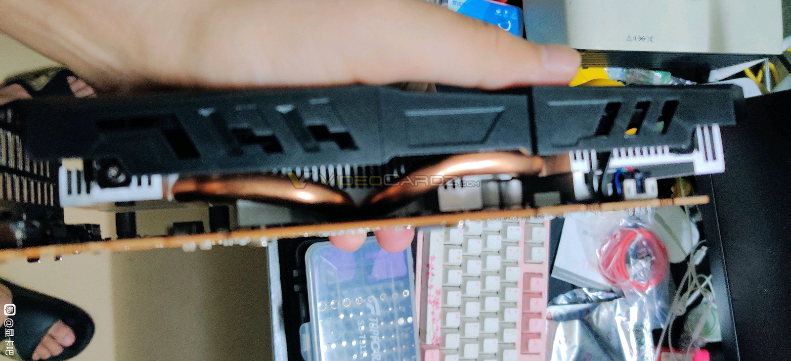A sticker with a QR code placed beside the PCIe interface confirms the card will have 8GB of GDDR6 memory, corroborating the memory specifications we've been hearing about.