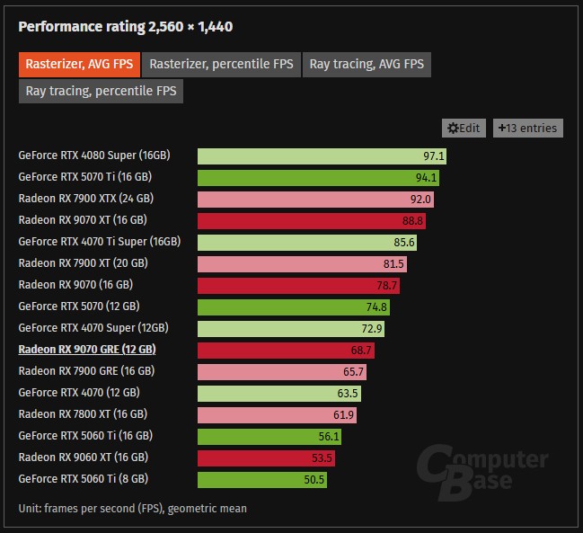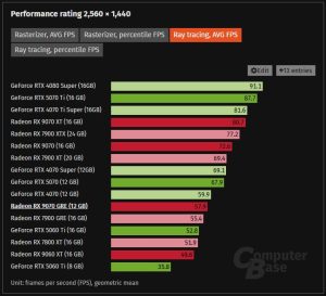 In a suite of 13 game tests at 1440p resolution run by Computer Base, the RX 9070 GRE proves to be a potent performer. On average, it delivers a 28.4% performance uplift over AMD's own RX 9060 XT 16GB and comfortably beats out Nvidia's RTX 5060 Ti 16GB by 22%. It even manages to pull ahead of the last-gen RX 7800 XT by 11% and the RTX 4070 by 5%. However, it doesn't quite catch its more powerful siblings. The standard RX 9070 remains 14% faster, while the flagship RX 9070 XT is a further 29% ahead. Nvidia's RTX 5070 also holds a 9% lead over the new GRE card.