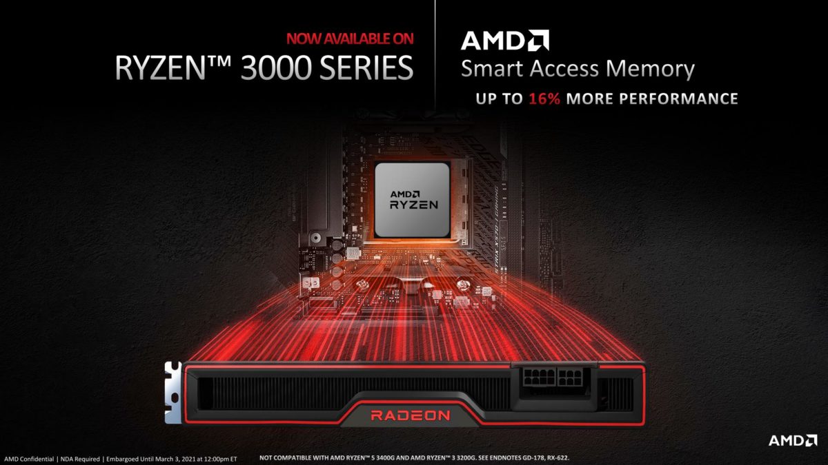 It seems AMD has taken the community's feedback into consideration and decided to enable SAM (Smart Access Memory) on Zen2-based processors. The confirmation was made during the “Where Gaming Begins: Episode 3” stream yesterday. AMD also confirmed that SAM will bring about the same performance increase (up to 16%) on systems using Ryzen 3000 CPUs as it does on the ones using Ryzen 5000 CPUs.