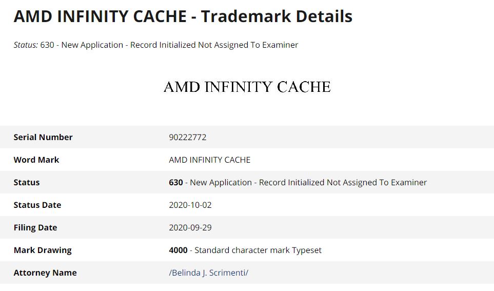 As reported by @momomo_us, AMD has filed a trademark on Justia Trademarks of an unannounced technology called Infinity Cache. This technology was first mentioned on RedGamingTech YouTube channel, and according to them, it will feature in the Radeon RX 6000 series graphics cards.