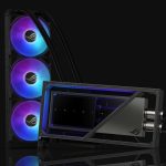 To complement the liquid metal cooling solution, the ROG Matrix GeForce RTX 4090 includes a custom 360mm radiator and three ROG MF-12S ARGB fans. The fans can be daisy-chained using a magnetic connector, simplifying installation and cable management. With high-static pressure and airflow, these fans effectively keep the ROG Matrix GeForce RTX 4090 operating at a cool 60°C under its 450-watt TGP. The need for an auxiliary fan is eliminated thanks to the custom full-coverage cold plate, which makes contact with all heat-producing components on the PCB.