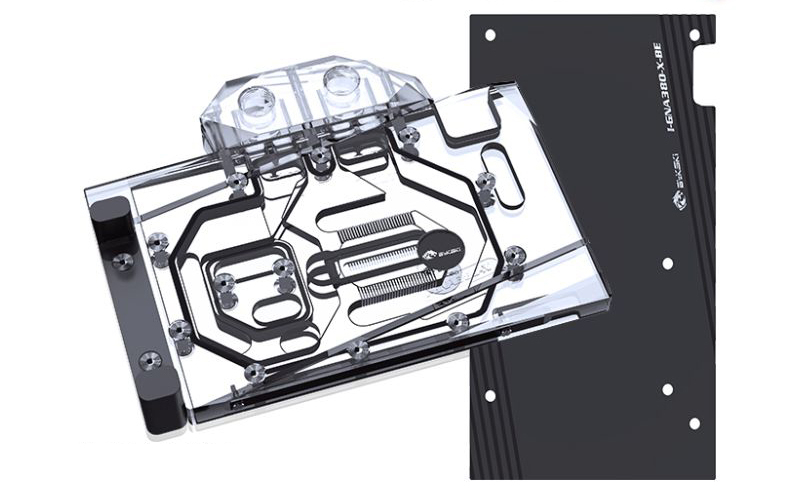 The Byski Gunnir Arc A380 GPU block comes bundled with a backplate.