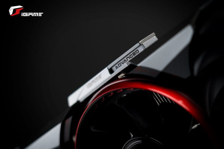 The Colorful iGame RTX 3060 Advanced OC also features a triple-fan cooling solution, but with a black, dark grey, and red theme. The premium shroud comes with a metallic finish that highlights the “Light Frozen” lighting effect coming from the “Energy Core” lighting around the middle fan. The heatsink features 4x 8mm heat pipes.
