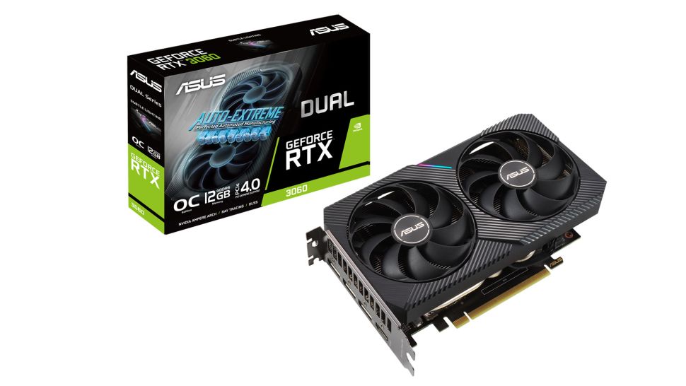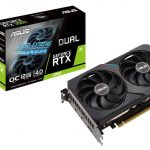 Lastly, there's the smaller Dual card, which is a simpler design with two fans, and it also appears to be ‘just' a dual-slot thickness. ASUS is yet to release confirmed clock speeds for its RTX 3060 SKUs.