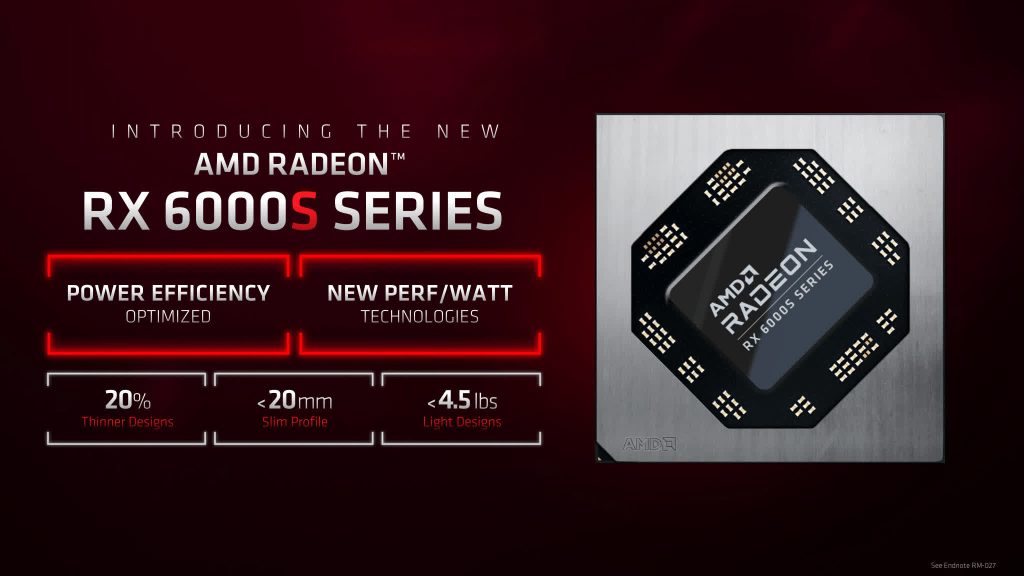 On the other hand, we have the Radeon RX 6000S series GPUs, optimised for efficiency and suitable for lighter laptops with slim designs. This series consists of the Radeon RX 6800S, targeting gaming at over 100FPS at max settings, the Radeon RX 6700S to game at over 100FPS at high settings, and the Radeon RX 6600S for 80+FPS gaming at high settings.