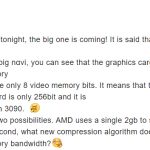 In the photos, it's possible to see labels on the graphics card. One of the labels has “Typical Samsung 16Gb” written on it. Based on what the leaker said about the layout (3+3+2 modules), each memory module should have 2GB of VRAM. This also means that it's using a 256-bit memory interface. The leaker also claimed that the graphics card on the photo shouldn't use the Navi 21 GPU with 80CUs, leading us to believe that this is more likely a mid-tier Radeon graphics card.