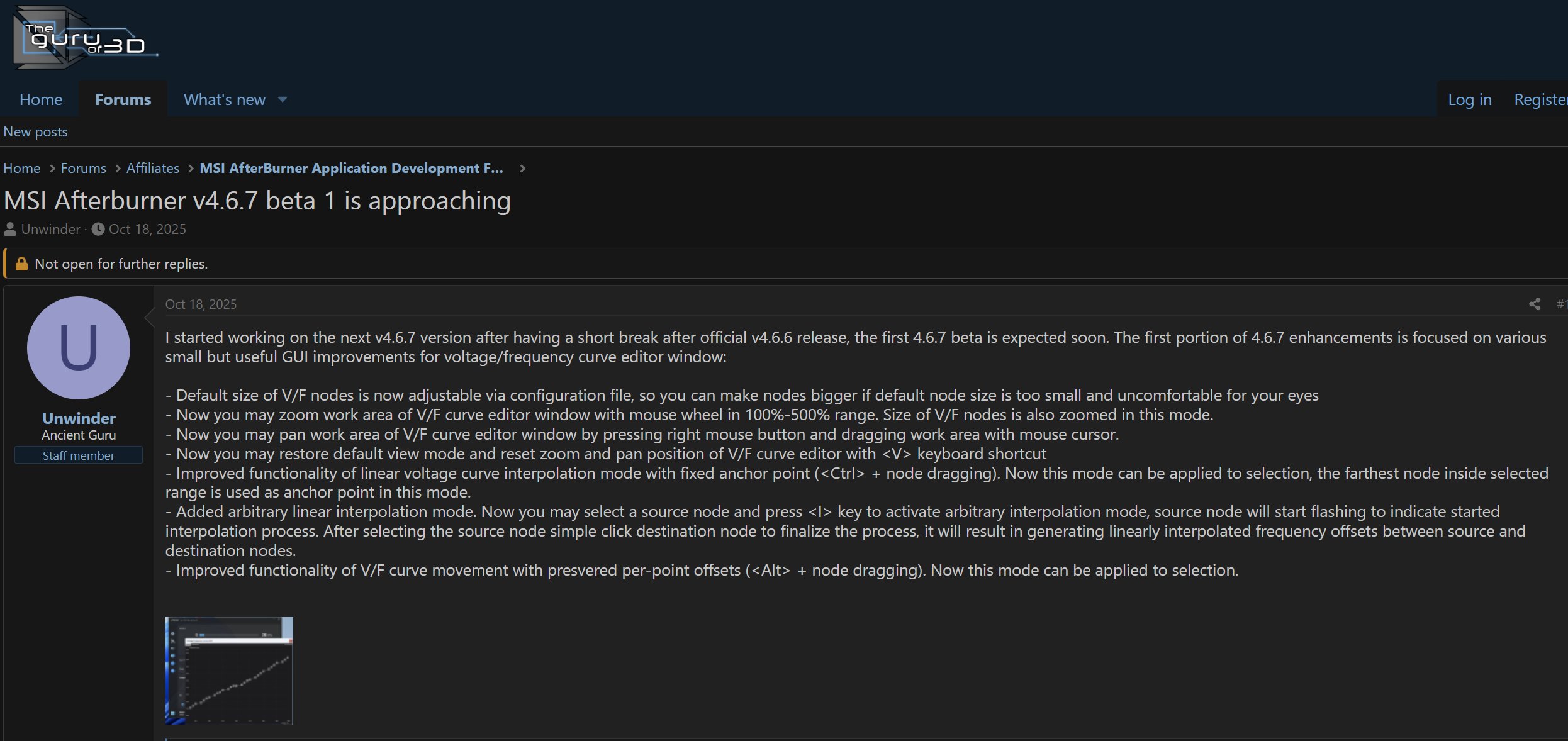 Alexey “Unwinder” Nicolaychuk is back at work on MSI Afterburner, with the first beta of version 4.6.7 arriving soon. This update brings some significant and long-requested usability improvements to the voltage/frequency (V/F) curve editor, making fine-tuning your GPU easier than ever. Moreover, it also hints at support for a mysterious new class of MSI hardware.