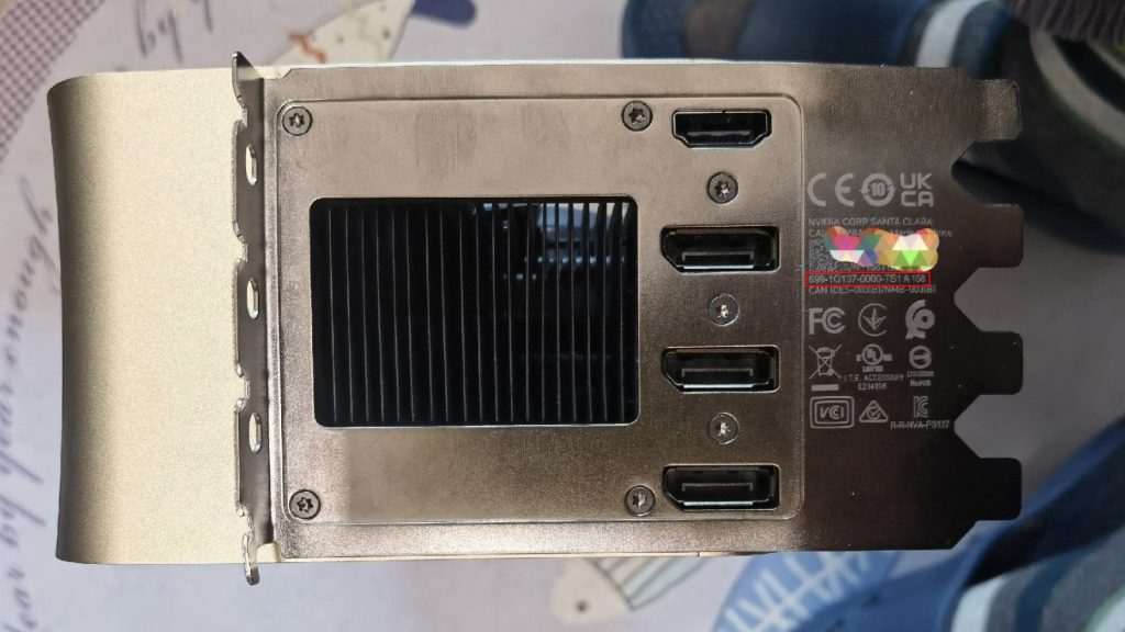 Given the “EB2” naming in the “699-1G137-0000-EB2” code on the entry, this is supposedly an engineering board. Moreover, the “699-1G137-0000” part is the same as the code found on the I/O bracket of the cooler pictures leaked by MEGAsizeGPU, meaning the card seen in these photos is probably an RTX Titan Ada Founders Edition card. It's also worth mentioning that, unlike the card listed in the manifest, the code of the card on the photo ends with “TS1”, likely referring to a test sample.