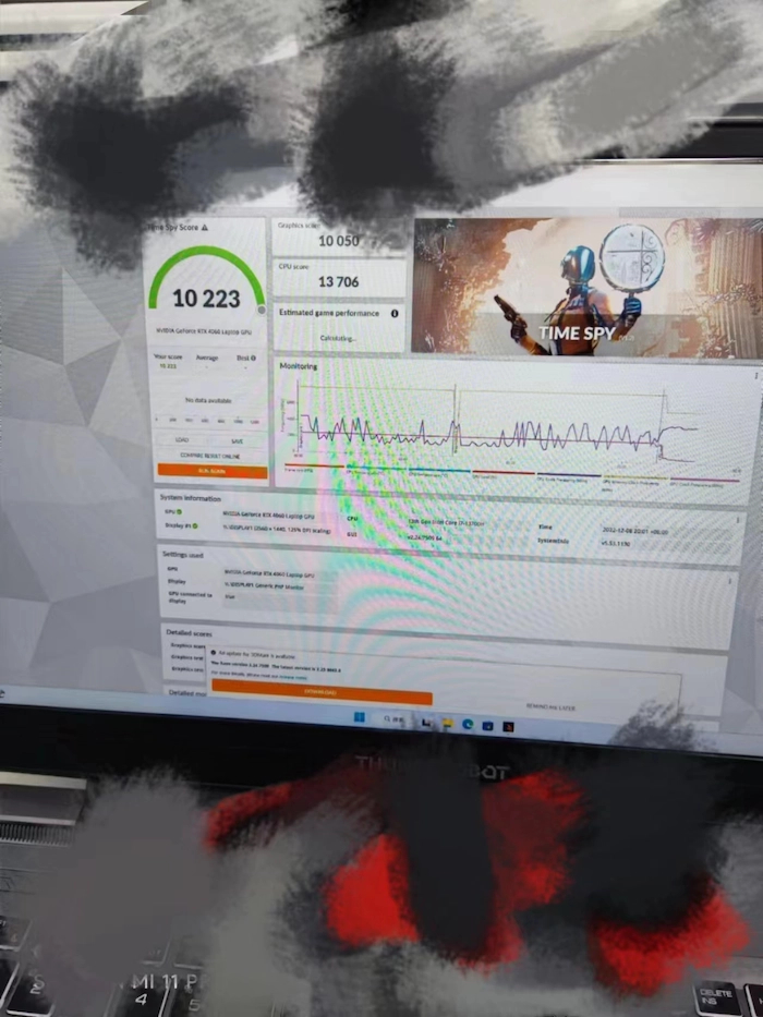 The picture showing the 3DMark Time Spy scores shared by ITHome (via VideoCardz) shows the GPU was paired with a 14-core Intel Core i7-13700H processor. Unfortunately, it's unclear which laptop was tested. The system scored 10,223 points, with a graphics score of 10,050 points and a CPU score of 13,706 points.