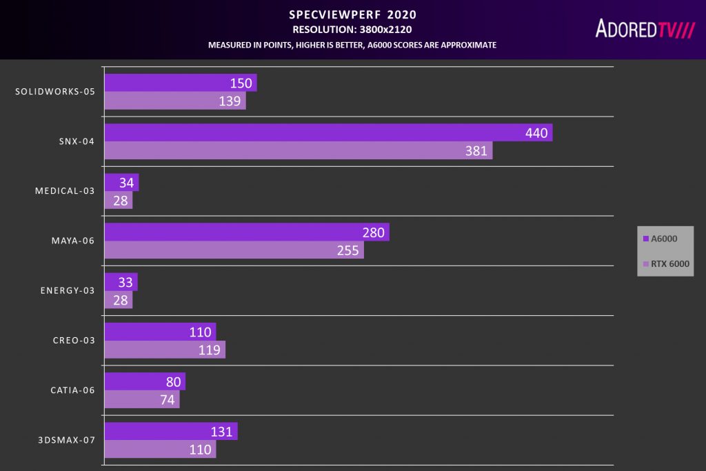 The benchmark results were leaked by AdoredTV. As seen by the results, the performance uplift might be considered underwhelming for some. The new mainstream RTX graphics card had one of the biggest generational leaps ever in the industry, which made many assume that the workstation line of graphics cards would also have a similar one. Note that this is a single benchmark. The “real” performance gains might be more than this. The leaker also claimed that “doesn’t know if this is a typical A6000”.