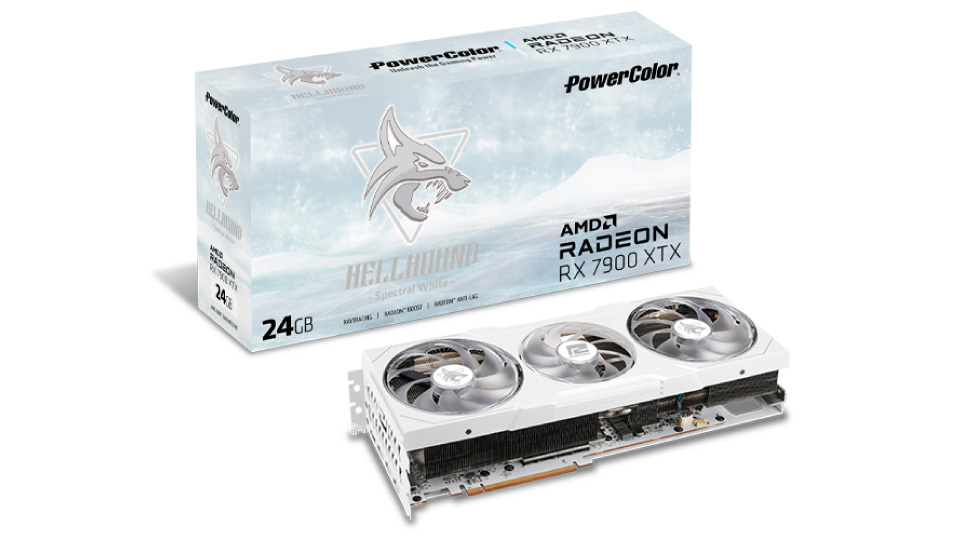 The Hellhound AMD Radeon RX 7900 XTX Spectral White graphics card has 6144 stream processors, a game clock of up to 2330 MHz, and a boost clock speed of up to 2525 MHz. The memory subsystem has 24GB of GDDR6 memory clocked at 20 Gbps and 96MB of Infinity Cache. The PowerColor Hellhound RX 7900 XTX Spectral White will release next week.