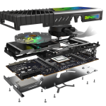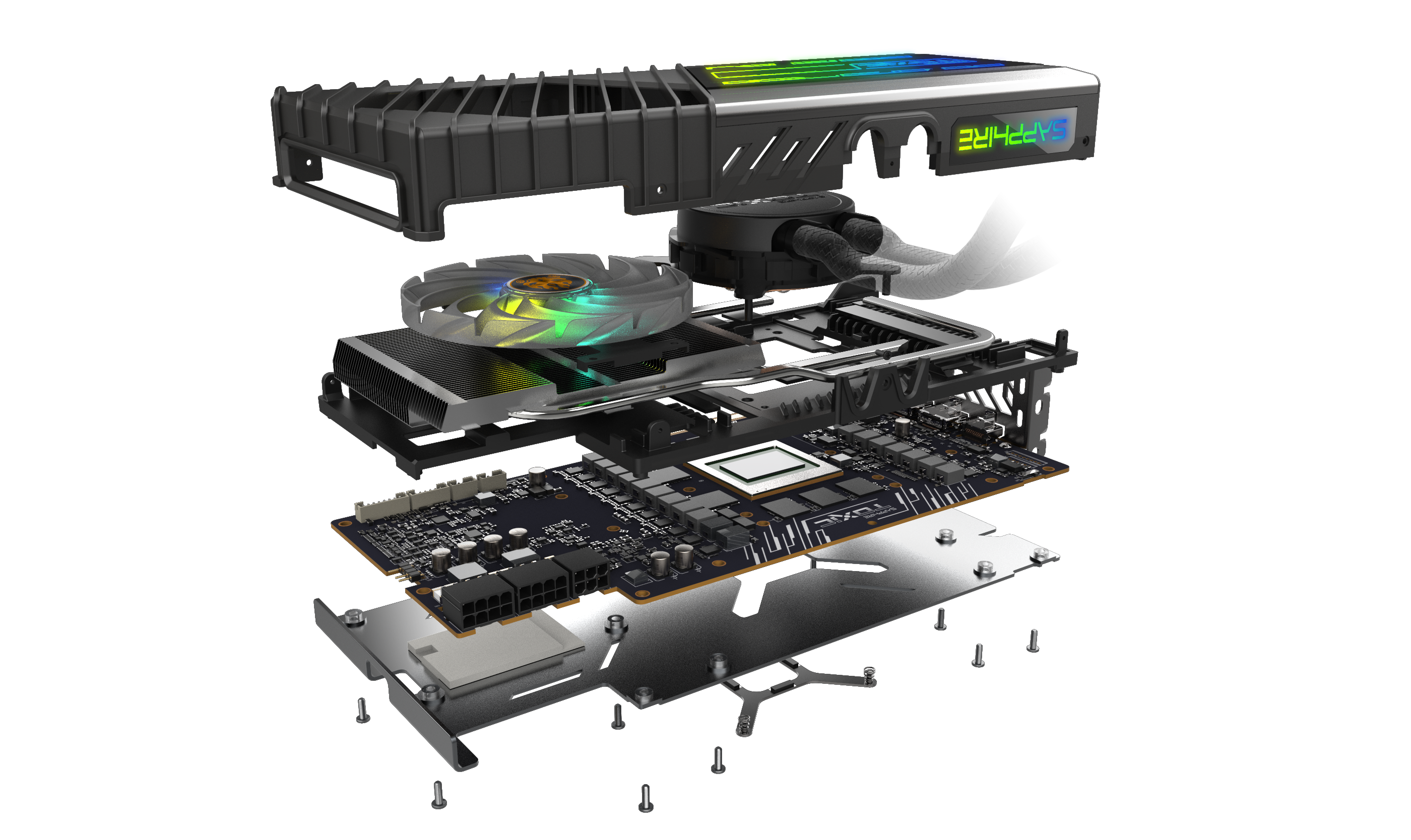 As you would expect from a high-end GPU, there is a dual BIOS function. The card also has multiple ARGB LEDs in the shroud, in the backplate, on top of the card, and in the centre of the radiator's fans. Users may configure the ARGB lighting in the Sapphire Trixx or synchronise with other components connecting the 3-pin RGB header to the motherboard.