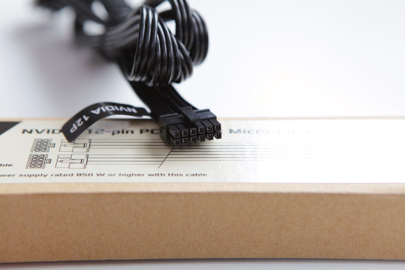 The Nvidia 12-pin PCIe Molex Micro-Fit 3.0 connector cable will be 750mm long. It's recommended to use it on an 850W or higher rated Seasonic PSU. Unfortunately, there's no information regarding how much power the 12-pin connector can deliver, but it's expected to be around the 300W mark (150W per 8-pin PCIe connector). Add the 75W delivered by the motherboard PCIe slot and it totals up to 375W of power to the graphics card.