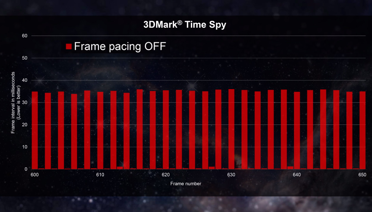 Frame pacing comes in to play when using alternative frame rendering, or AFR, to split the workload between GPUs. This allows the first to render one frame, and the second the next, alternating back and forth – hence the name.