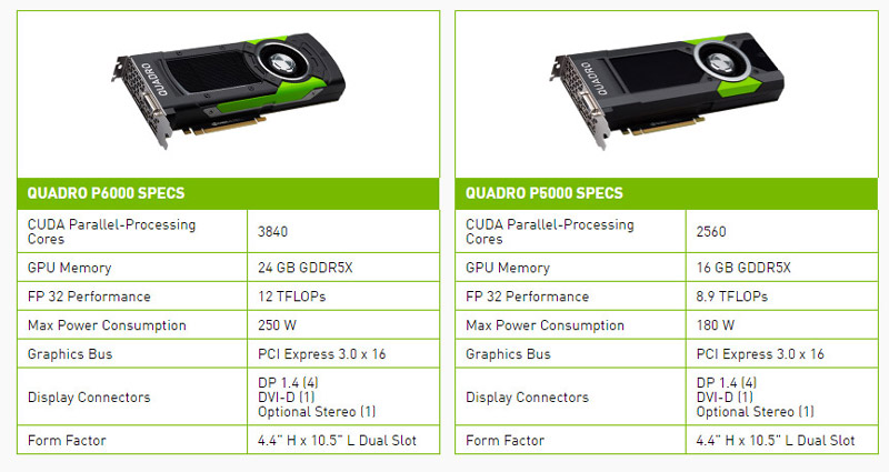 Its bigger brother the P6000 though, draws a much heftier 250w, because it puts out as much as 12 teraflops of floating point performance. That's thanks to its monstrous 3,840 CUDA cores, combined with 24GB of GDDR5X memory.