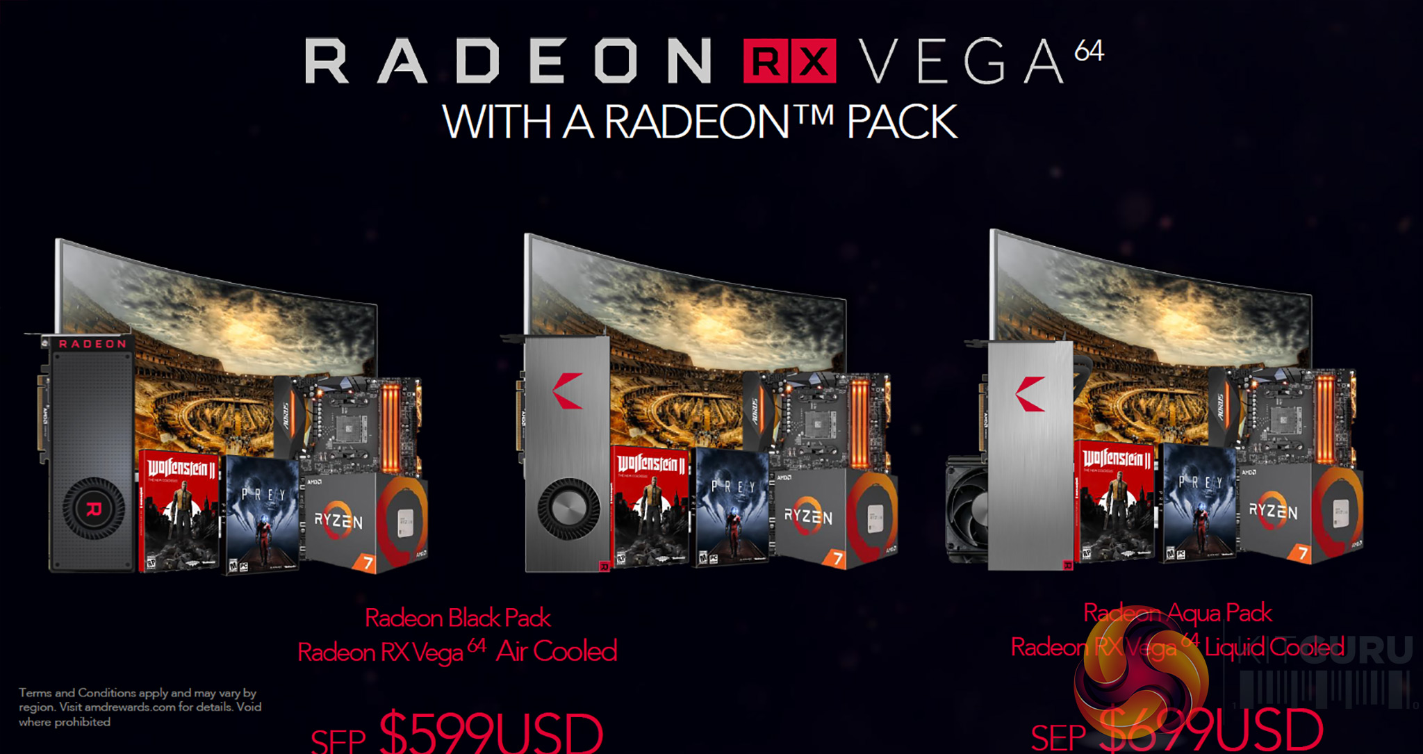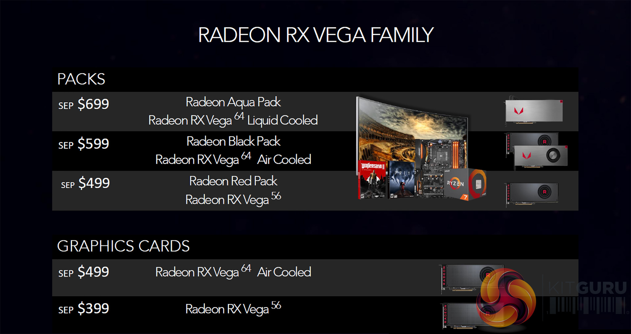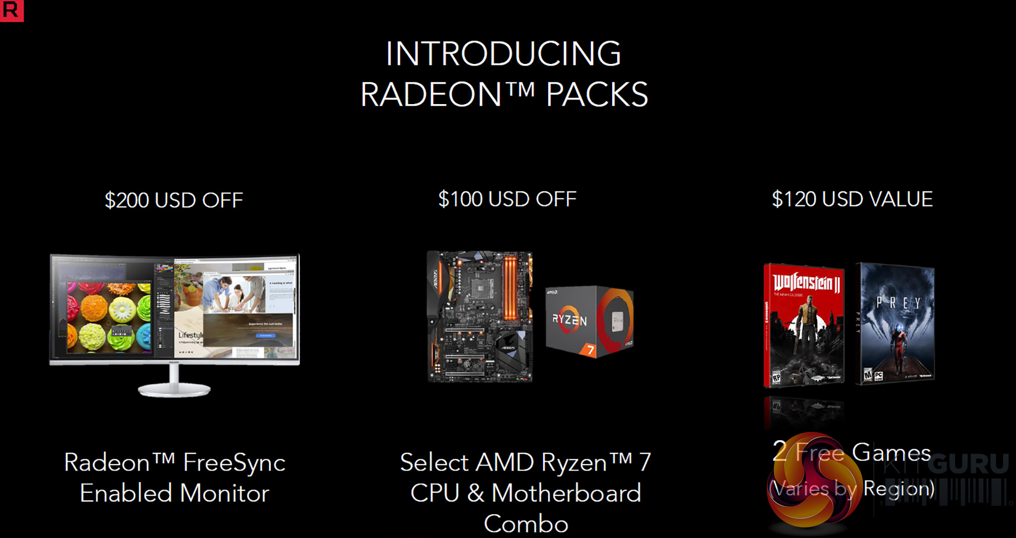 AMD has complicated the matter by introducing packs of products to bundle Vega with Ryzen 7, X370 motherboards, FreeSync monitors such as Samsung CF791 and games (they listed Wolfenstein 1, Prey, Sniper Elite 4)