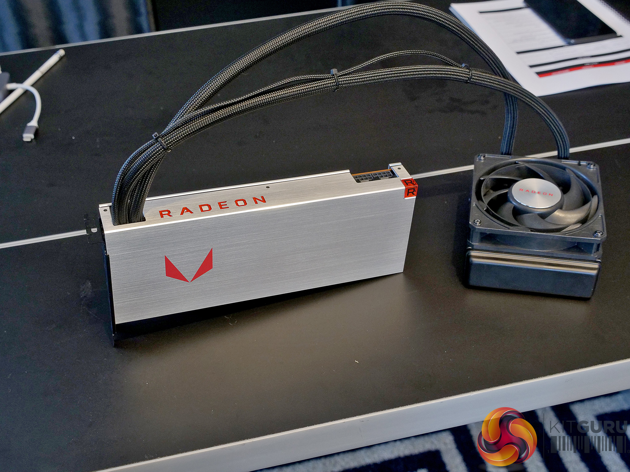 Radeon RXVega64 is the prime air cooled graphics card with 64 Next Gen Compute Units. If we were following AMD’s style closely the 64 would be a superscript. The baby of the trio is Radeon RXVega56 with, yes, 56 Next Gen Compute Units. At the top of the tree we have the Radeon RXVega64 Liquid Cooled Edition which speaks for itself. The liquid cooler appears to be from Asetek, rather than the Cooler Master hardware we saw on Fury X.