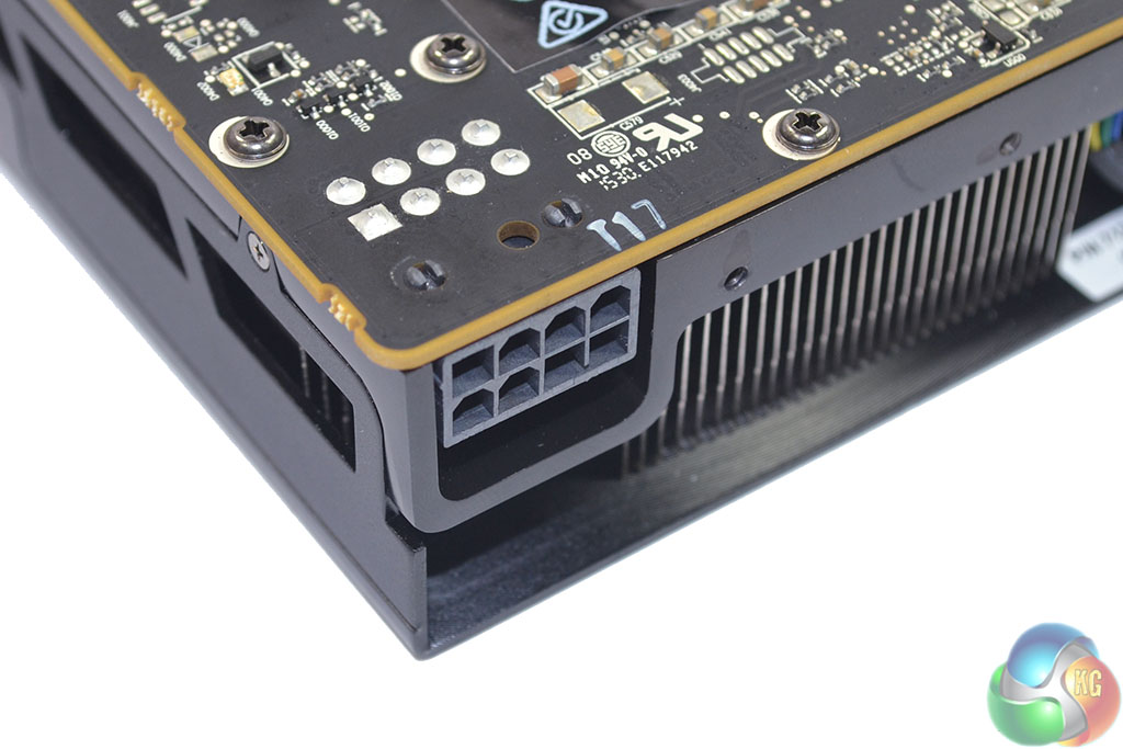 The card's six-inch length means that it does not overhang the edge of a 6.7″x6.7″ mini-ITX motherboard such as Asus' Z170i Pro Gaming. That additional seven tenths of an inch is useful for allocating clearance to the 8-pin PCIe power cable.