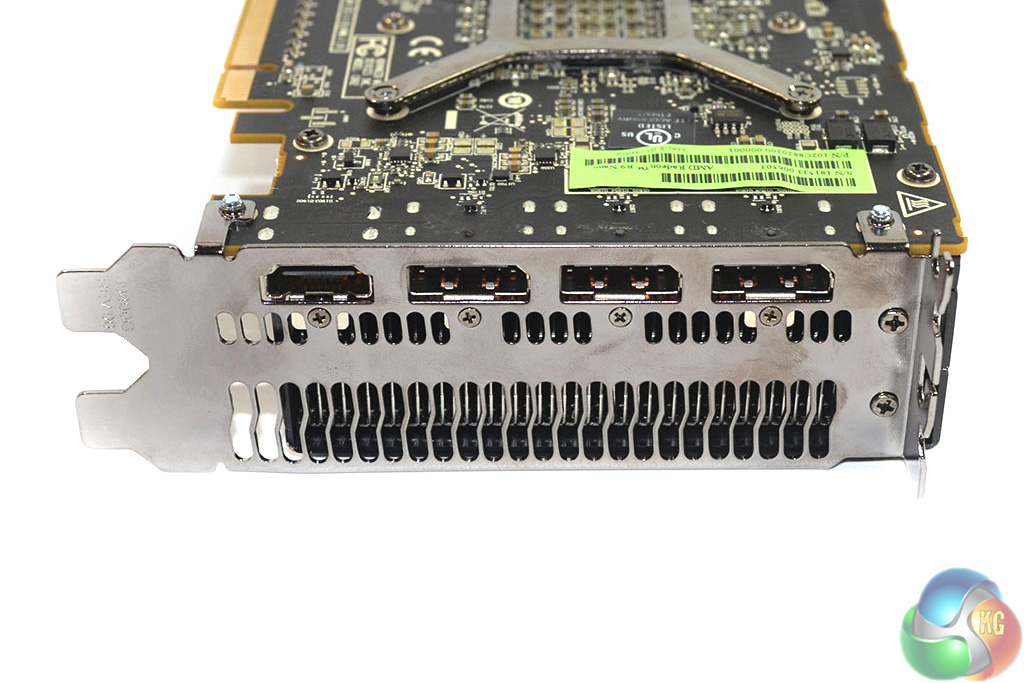 All four display connectors are squeezed onto a single row, with very little of the precious airflow grille space being wasted.