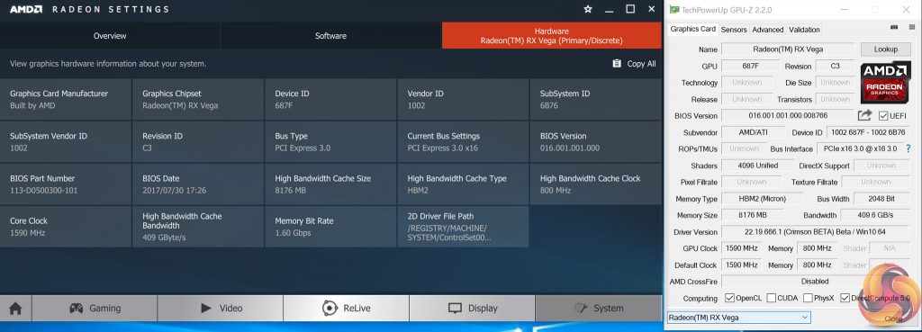 We suggest that buyers of RX Vega56 cards have a play around with the power profiles to see which ones best fit their performance, noise, and power draw needs. Our testing will be conducted using the ‘Turbo' mode so that we can see the card's all-out performance capability, albeit at the expense of power draw, noise output, and temperature levels.