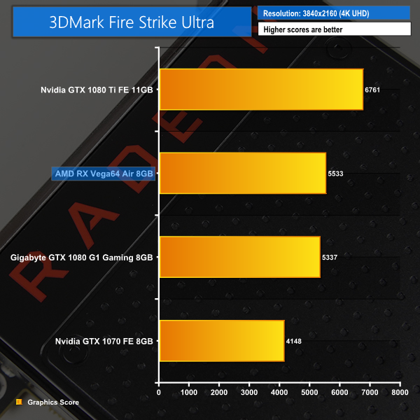 3DMark's Fire Strike and Fire Strike Ultra benchmarks sit the RX Vega64 graphics card slightly ahead of a factory-overclocked GTX 1080 in the graphics department. However, the hierarchy positions change when looking at the DX12 Time Spy test. Both benchmarks make for a positive start for Vega64, given its relative price.