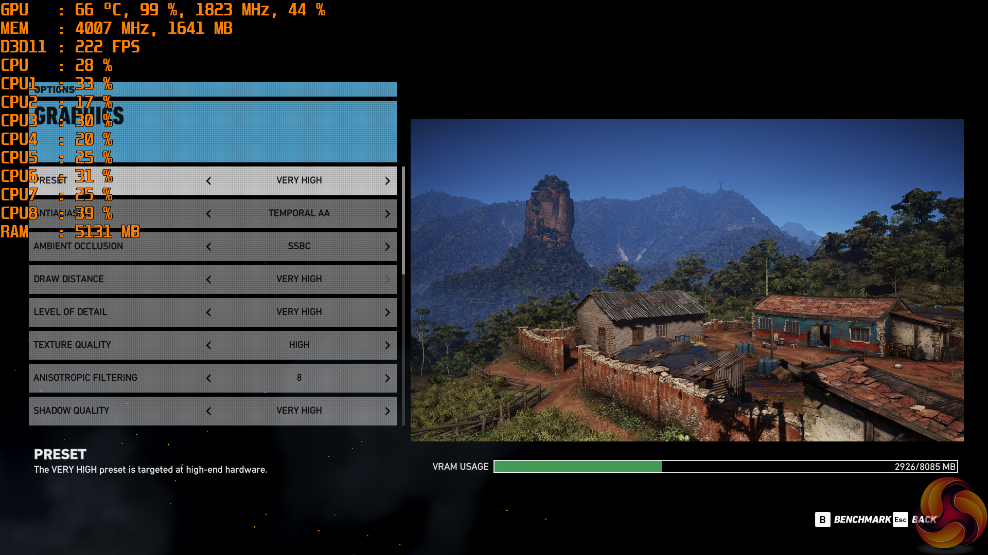 We run the built-in benchmark using the Very High quality preset at 1080P, 1440P, and 4K.