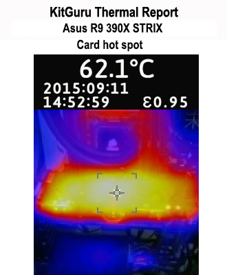 Asus' backplate design is excellent. The sheet of metal actively spreads heat away from the GPU core area and is effective in transferring it to all areas of the backplate in order to enhance cooling performance. A hot spot of around 62C should be no cause for concern.