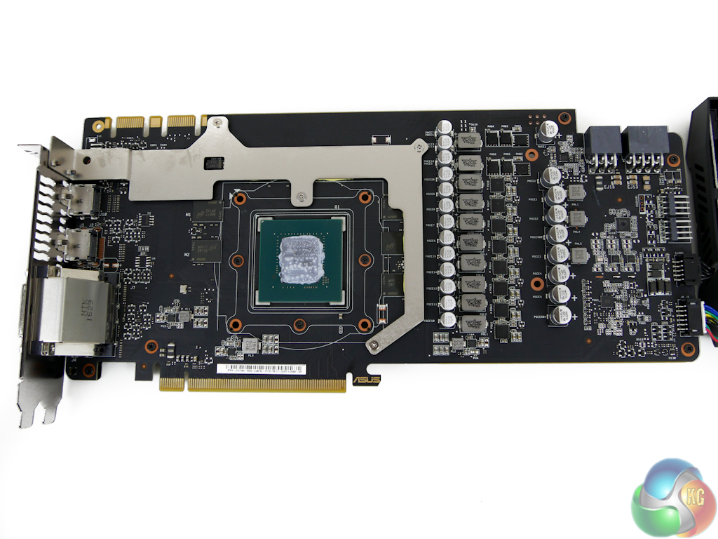 Removing the DC3 cooler shows that ASUS has redesigned the PCB for the STRIX model. This is important if you are sourcing after-market cooling hardware as the board layout is different to that of a Founder's Edition or reference card.