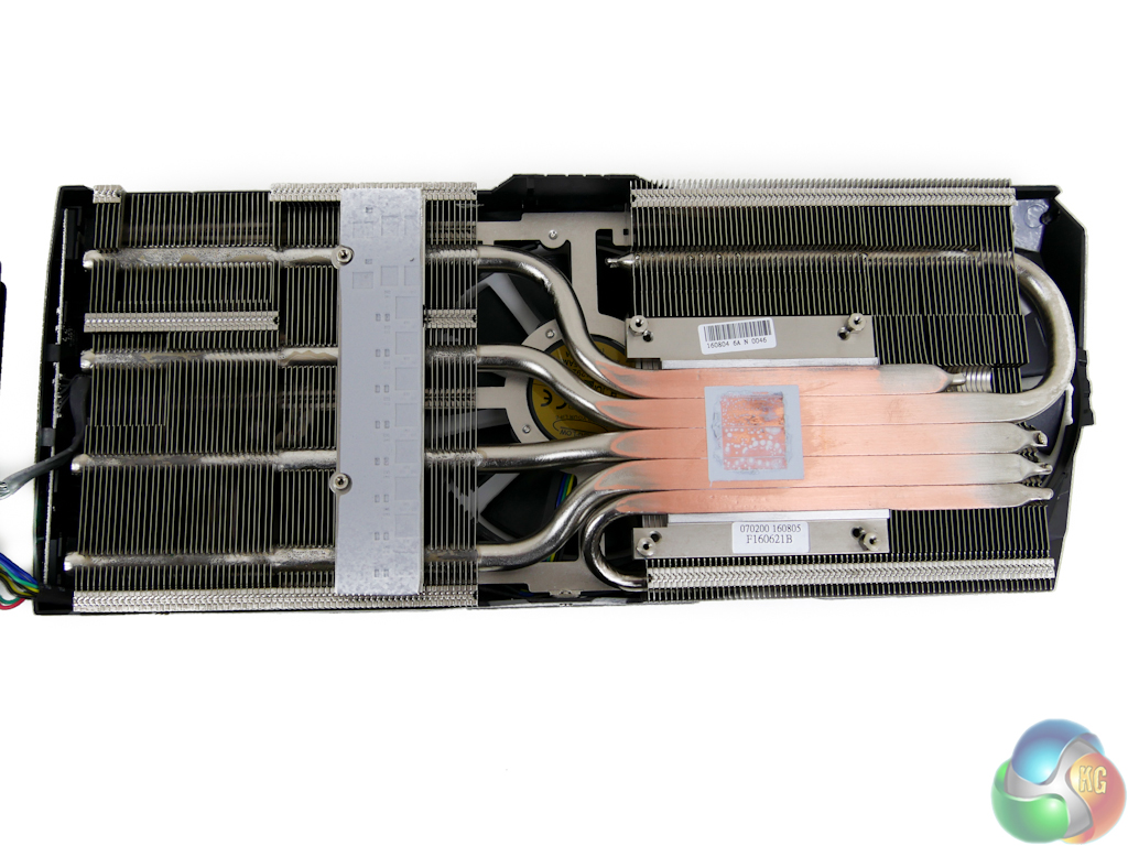 This is far from an ideal design for a heatsink nor is it particularly efficient use of five heatpipes. Our thermal performance will reveal whether the system performs adequately or not. Also worth noting is the attention paid to memory chip and VRM cooling which is always good to see (and expected on a card of this price and calibre).