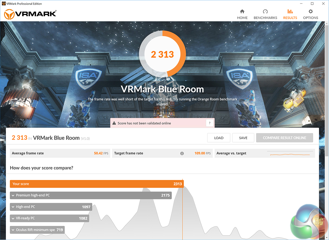 The Orange Room test compresses the scores for high-end graphics cards and shows that many of today's options are capable of delivering a solid experience for HTC Vive and Oculus Rift-type resolutions (2264×1348 test resolution). Blue Room and its 5120×2880 rendering resolution, on the other hand, is an absolute killer for graphics cards but it does show tangible gains when stepping up through the performance hierarchies.