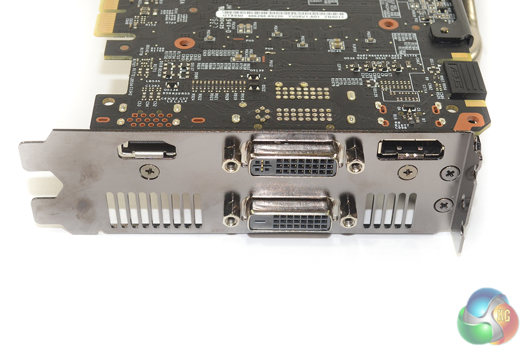 With the GTX 950 reference card being rated for a 90W TDP, it comes as no surprise that we see a single 6-pin power connector. The GTX 750 and GTX 750 Ti did not use 6-pin power connectors, which made them ideal for HTPC usage or users who have a decent quality PSU but without the relevant PCIe power cable (I'm looking at you, Dell and HP users).
