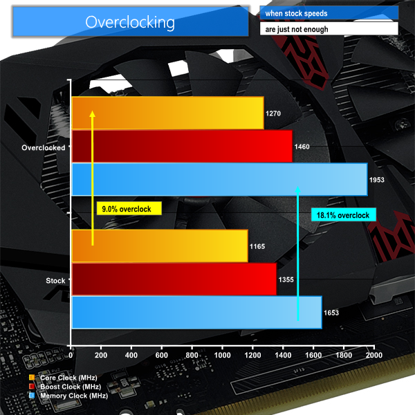 Overclocking headroom is one of Nvidia's biggest strengths with the Maxwell chips. Board partners are able to successfully ship cards that are factory-overclocked to the point where their realistic performance segment is raised.
