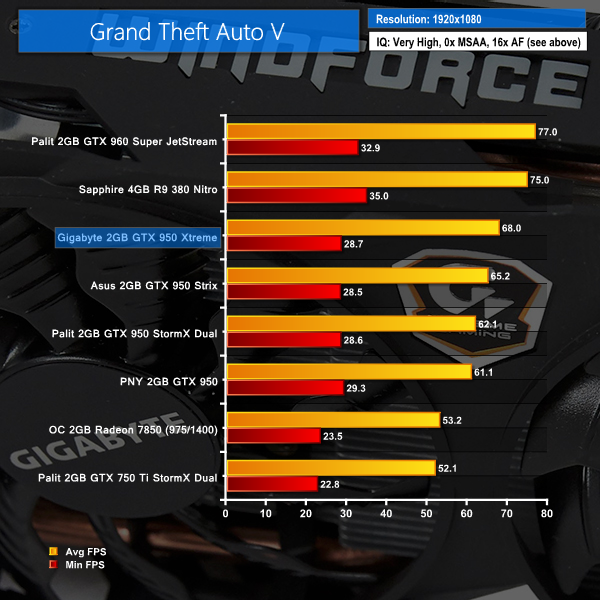 We set all of GTA V's primary settings to the Very High level (ambient occlusion was High). MSAA was turned off as it deals a harsh blow to the graphics cards' frame rates. The built-in benchmark is used to gather performance data.