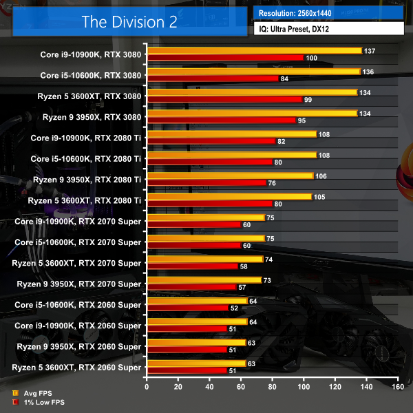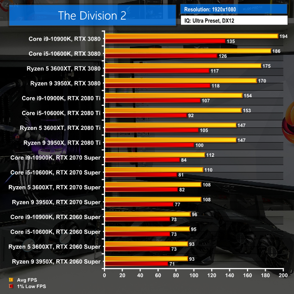 With The Division 2 at 1080p, if you want to average more than 144 FPS using the Ultra image quality settings, RTX 2080 Ti level performance is the go-to option.