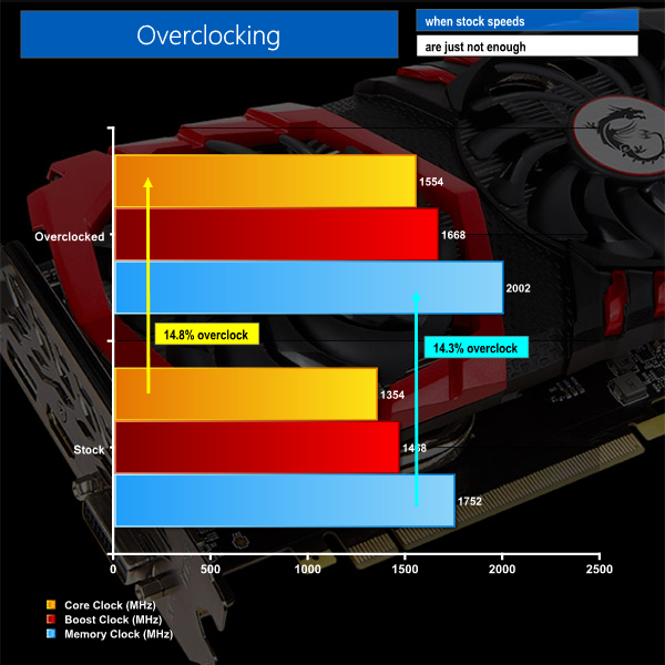 The oc capability are mind boggling.Started today.Got it to 150 mhz on the gpu and 200 mhz on the memory.Stock voltage.Pretty sure will get around 350 on the memory on stock(if i am lucky)After reading some reviews it performs pretty well.Problem for me are i am still running an amd FX 4170 k.Will be getting the nxt gen ryzen cpu as not wasting time again on first gen cpu’s.Just personally i am truly impressed.Not a big msi fan but from back in 2004 or something they had some of the best oc cards out there(my old 9600 pro could do around a 25%+ oc back then :D)