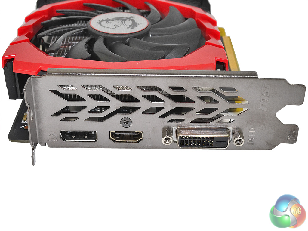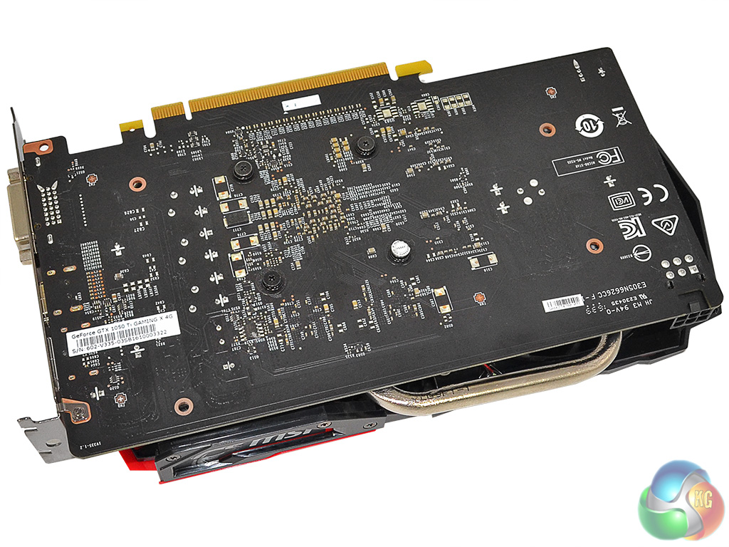 The GTX 1050 Ti does not support SLI so there is no bridge connector present. MSI includes a white LED behind the company logo in order to give it an eye-catching glow.