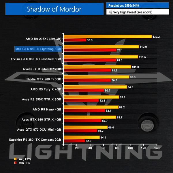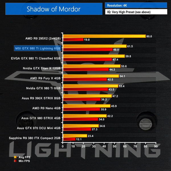 We used Shadow of Mordor's Very High image quality preset for both resolutions and tested using the built-in benchmark.