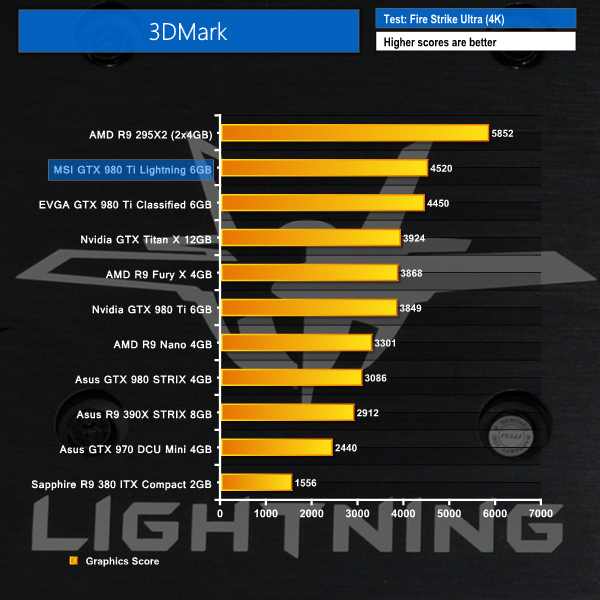 These scores are class leading, and at both resolutions, the MSI GTX980 Ti Lightning is top of our ‘single GPU' chart – behind the dual GPU R9 295X2.