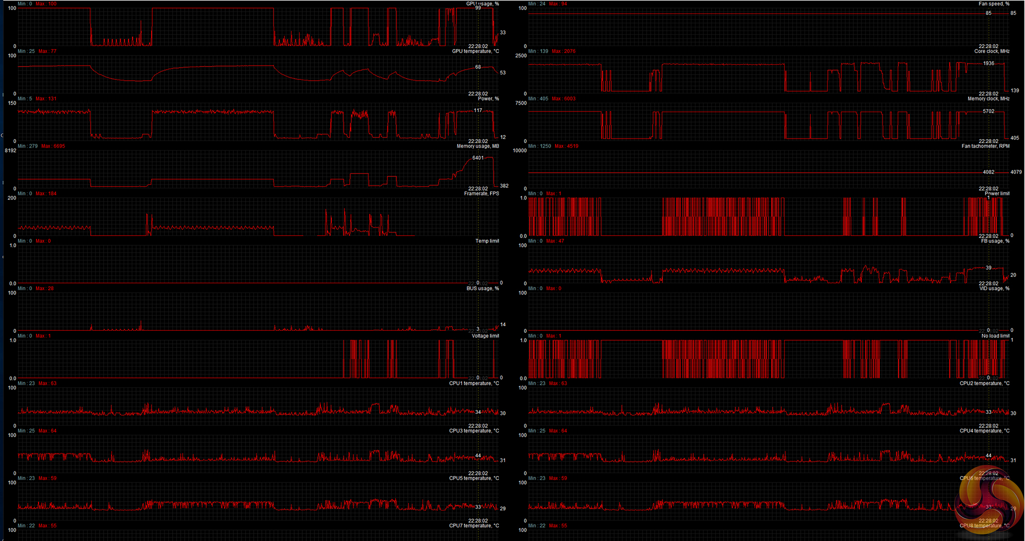 However, playing Rise of The Tomb Raider and Gears of War 4 at 4K resulted in a maximum GPU core frequency around the mid-1900MHz level.