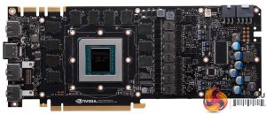 Power is delivered to the GTX 1080 Ti through a combination of side-mounted 8-pin and a 6-pin PCIe power connectors. We expect to see board partners shipping factory-overclocked cards that leverage dual 8-pin PCIe power connectors, or perhaps even a trio for overclocking-geared SKUs.